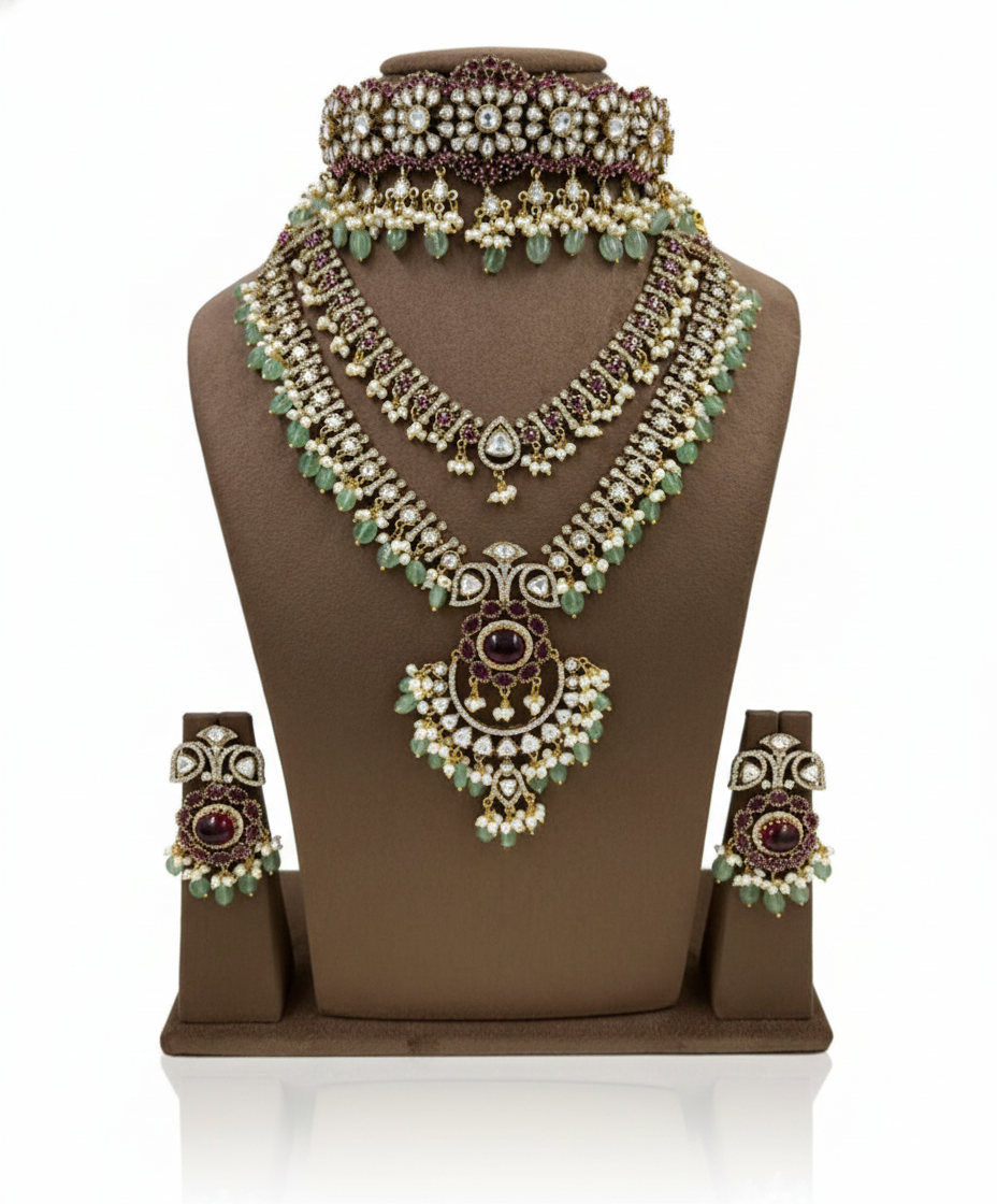 Occasion: This set is an ideal choice for bridal wear, grand weddings, or festive celebrations like Diwali. It pairs perfectly with Kanjeevaram sarees, heavy lehengas, or silk anarkalis.
