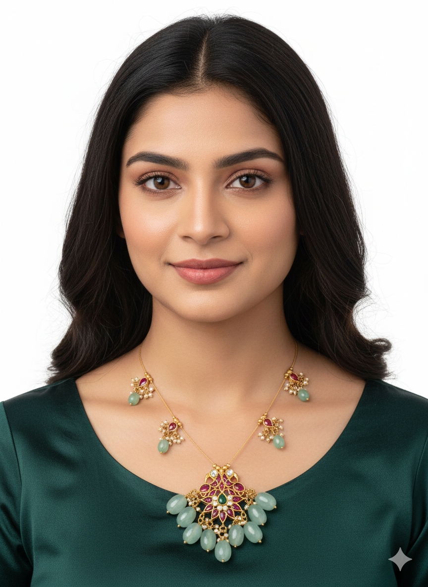 Elevate your jewelry collection with this exquisite handcrafted necklace, featuring a fusion of traditional Indian artistry and modern elegance. This piece is designed for those who appreciate intricate detailing and timeless heritage styles.