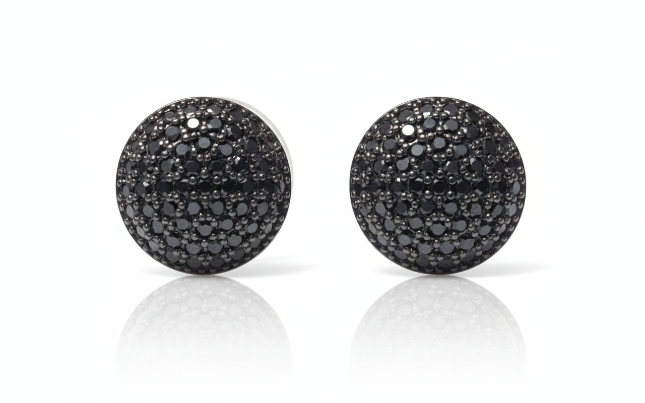One arm of the cross is inlaid with polished white enamel, offering a clean and minimalist aesthetic. The overlapping arm is adorned with a row of precision-cut baguette stones, creating a continuous stream of radiance. These studs are designed to sit flush against the ear, making them an ideal choice for the modern professional or as a chic accessory for an evening out.