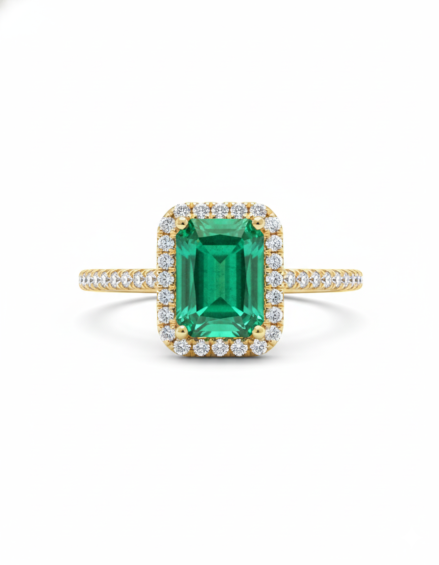 Be the first to review “Classic Emerald-Cut Emerald Halo Engagement Ring”