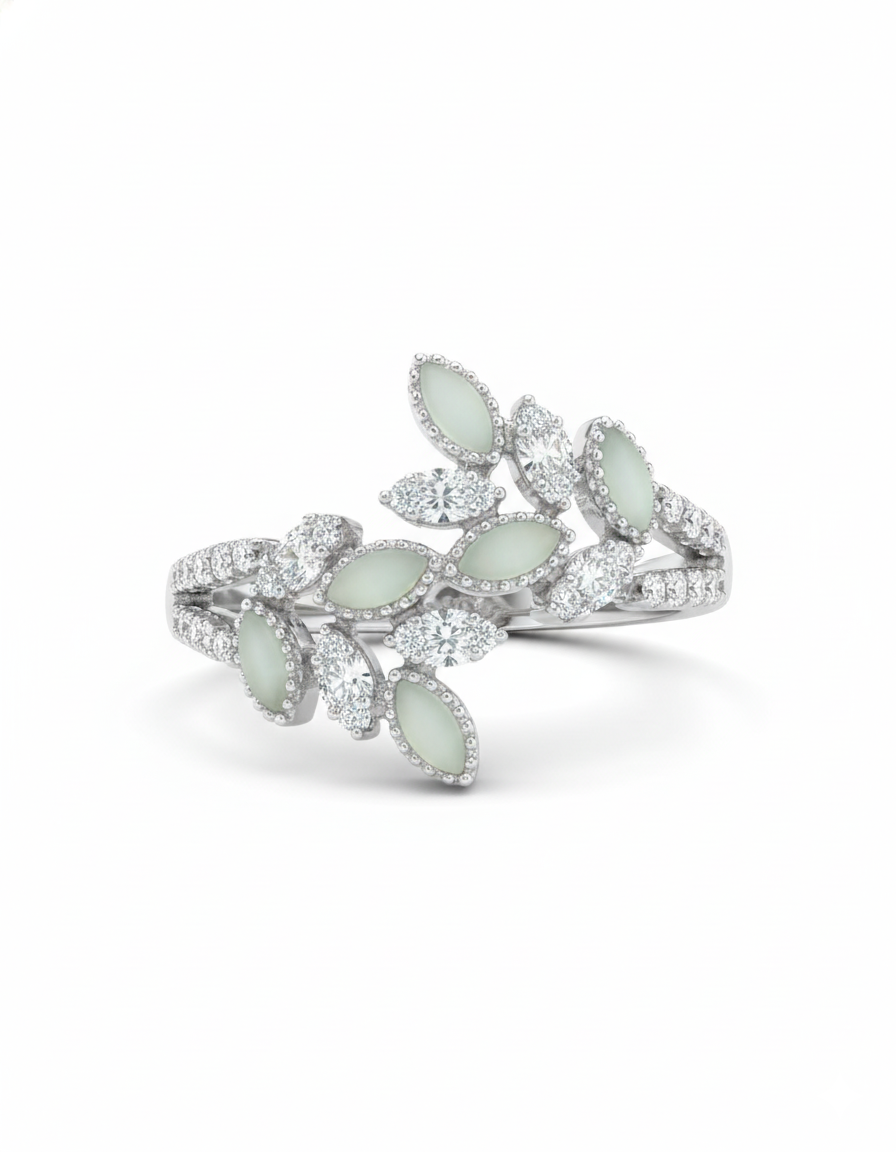 The elegance continues down the shoulders with a slender pavé-set diamond band, adding a continuous flow of light to the design. Crafted in high-polished yellow gold, the warm metal provides a stunning contrast to the vivid green of the emerald and the icy brilliance of the diamonds. This ring is a perfect choice for an unconventional engagement, a May birthday, or a luxurious milestone gift.