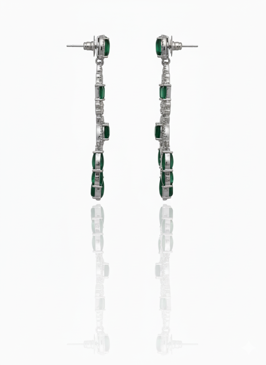 Featuring layered architectural motifs and elegant emerald drops, these earrings embody regal opulence and timeless craftsmanship—designed for gala evenings, weddings, and heirloom collections.