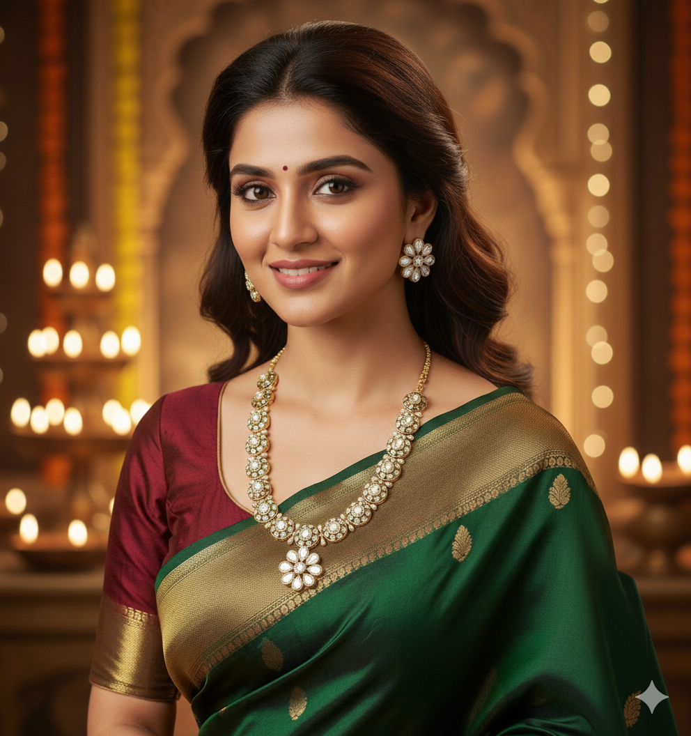 Elegant Polki Floral Bloom Pendant Necklace Set