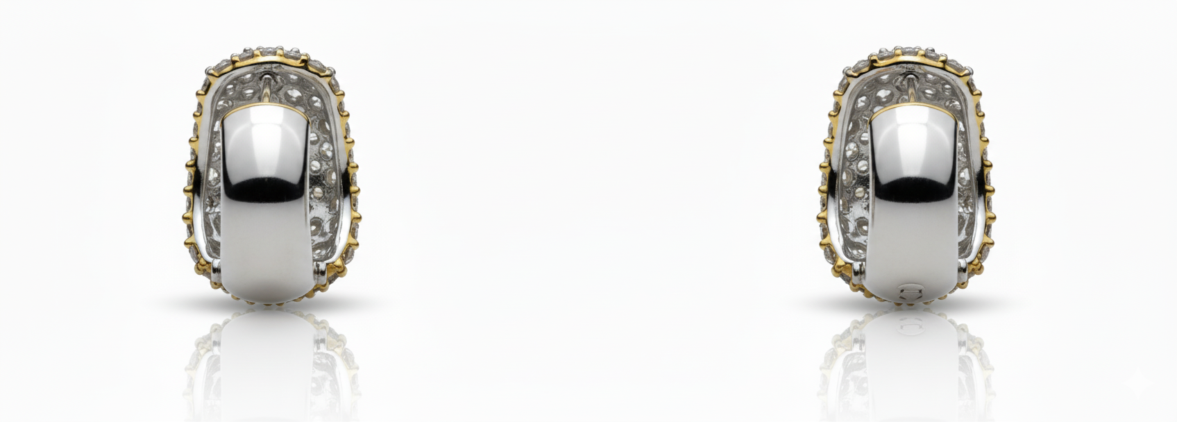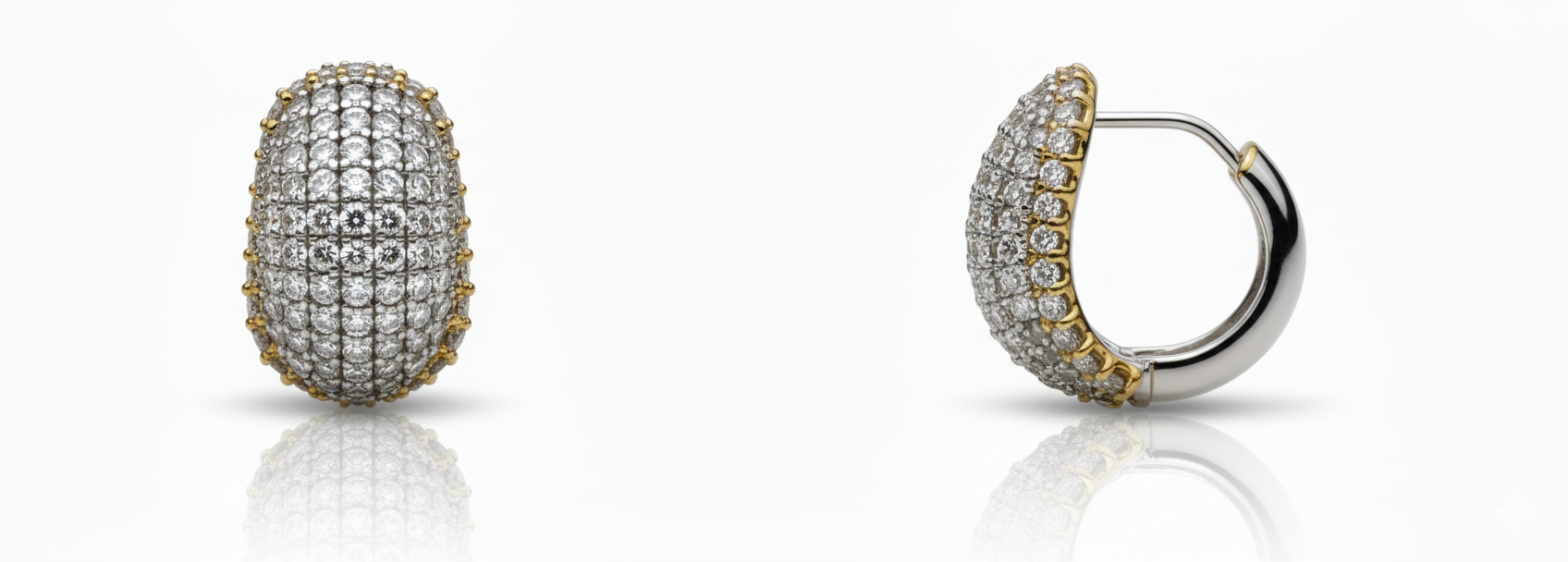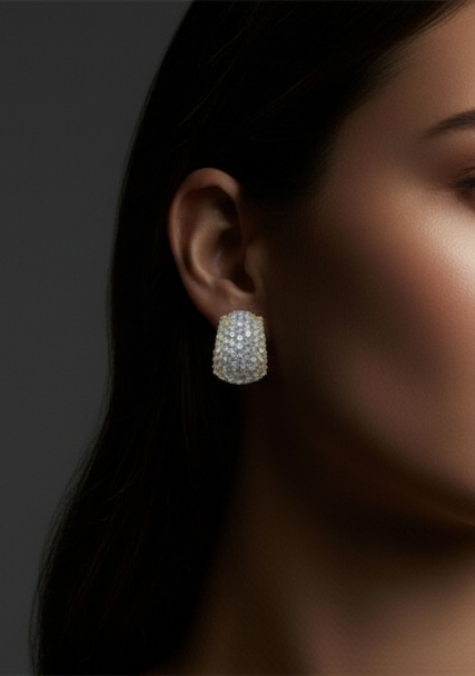 Experience the ultimate in versatile luxury. These wide-band huggies are designed for the modern woman who seeks high-impact sparkle in a comfortable, everyday silhouette. The meticulous stone-setting creates a “wall of light” effect that captures attention from every angle.
