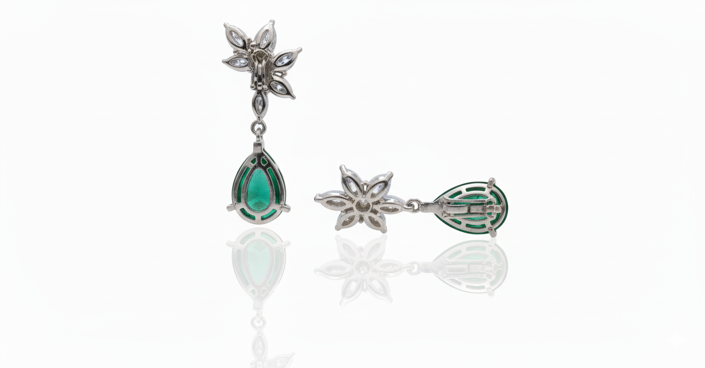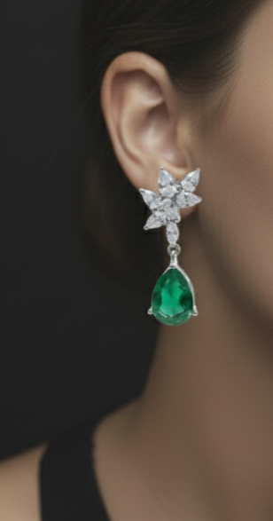 Be the first to review “Emerald & Diamond Floral Drop Earrings”
