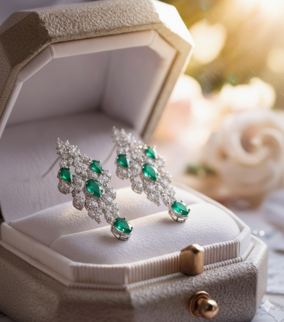 Crafted for special occasions and statement moments, these earrings exude regal charm and exceptional craftsmanship. Whether paired with an evening gown or a couture ensemble, they offer a striking yet elegant presence that embodies luxury, femininity, and enduring style.