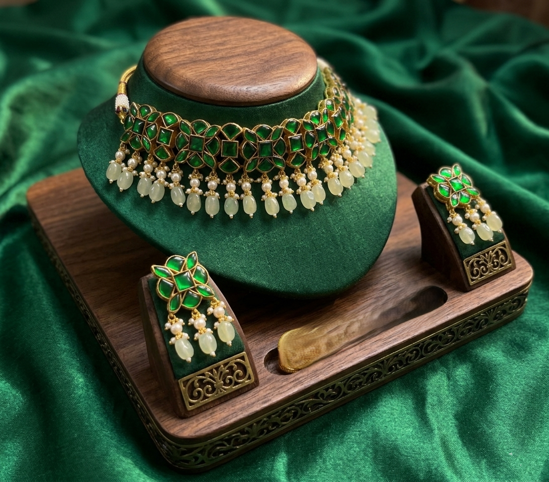 • Styling Tip: Best paired with deep-toned sarees, lehengas, or high-neck ethnic blouses to let the green stones pop.