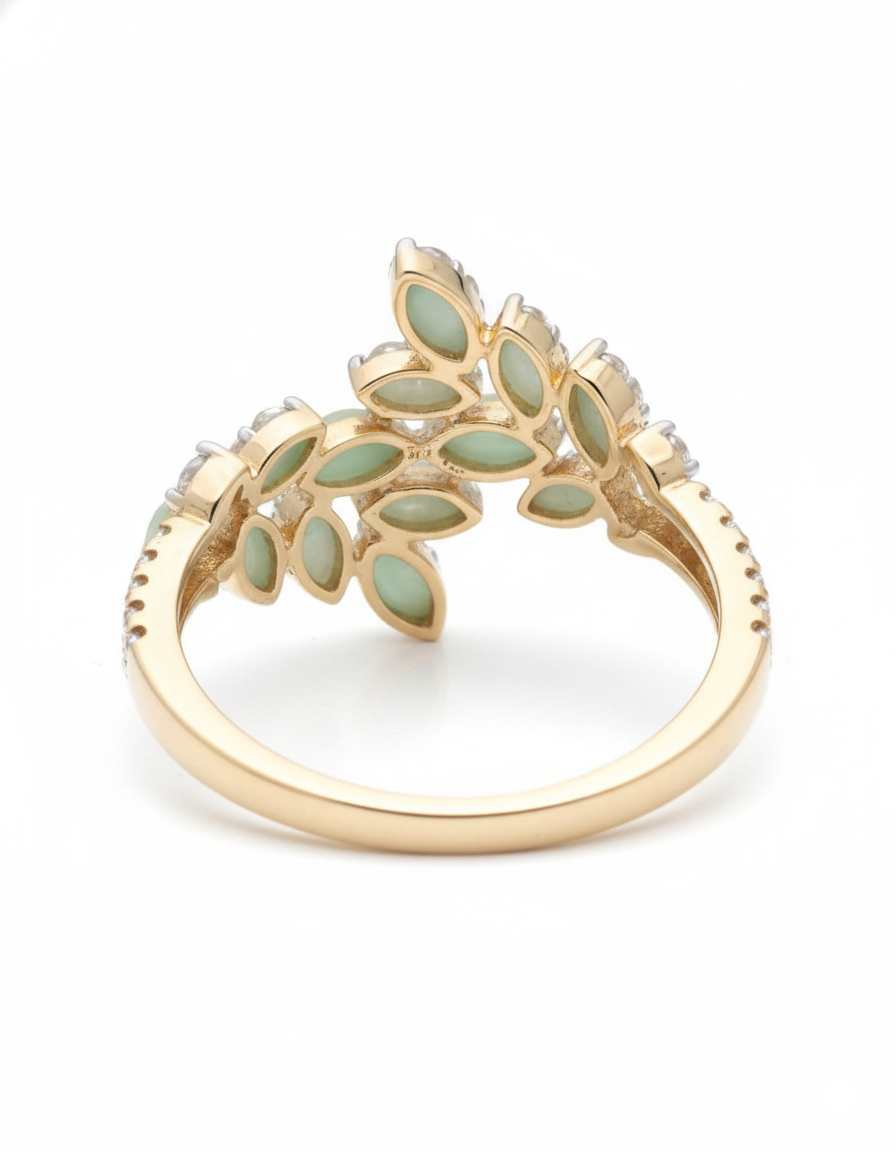 Ethereal Mint Enamel & Diamond Marquise Leaf Ring