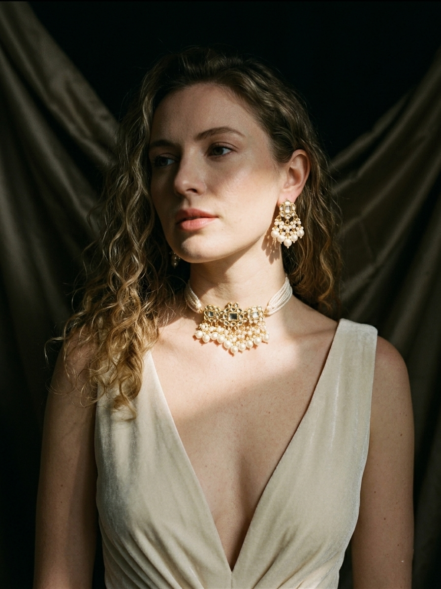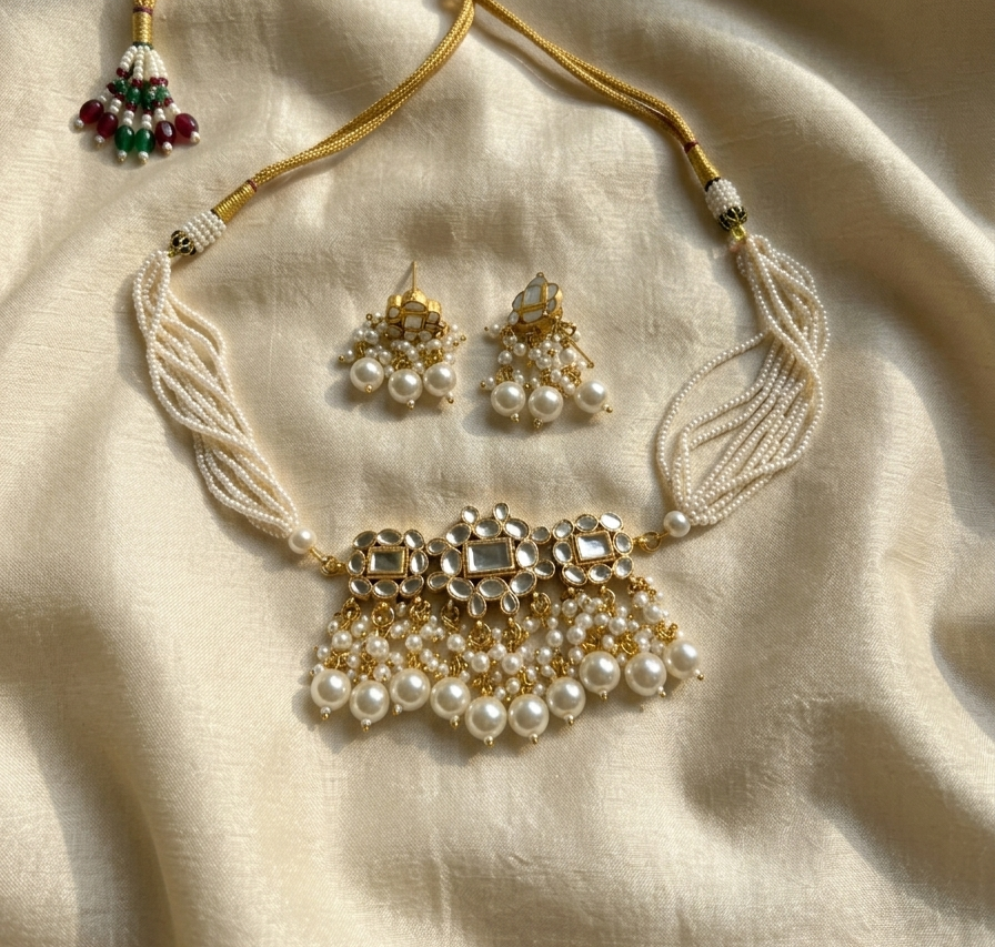 Exquisite Kundan-Style Pearl Choker Set