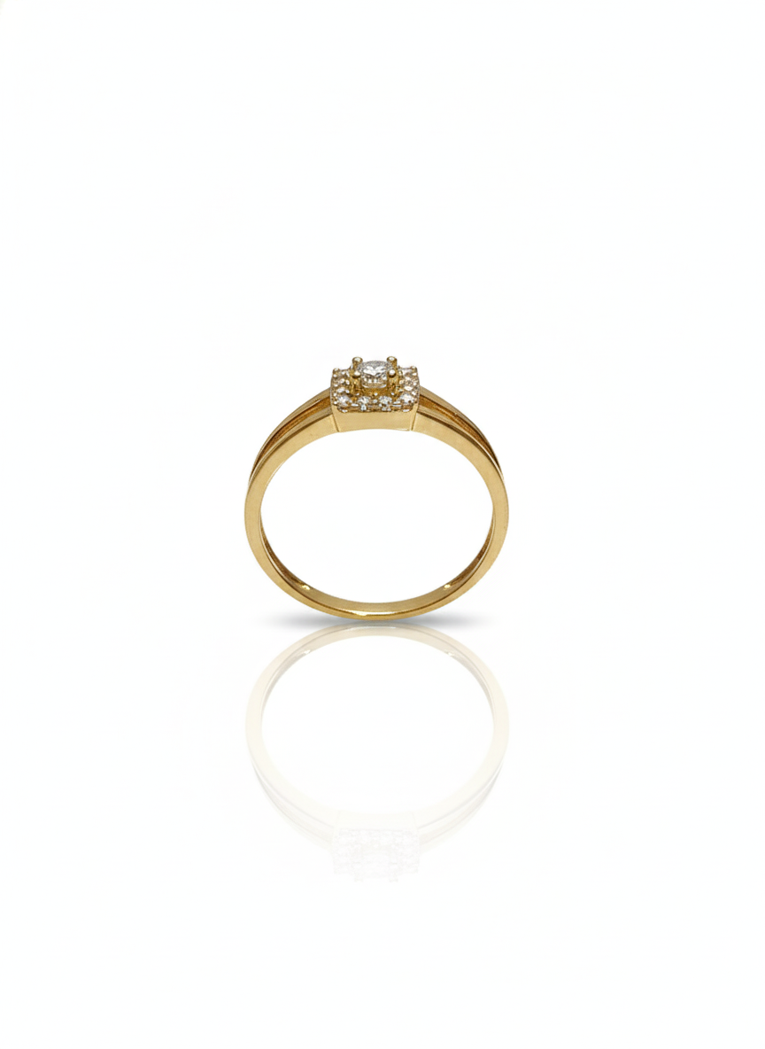 Exquisite Square Halo Solitaire Ring in 18K Yellow Gold Plating with Brilliant Zirconia