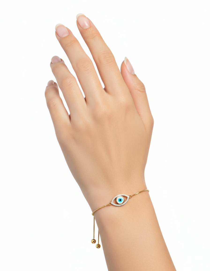 Gold Oval Evil Eye Adjustable Bracelet