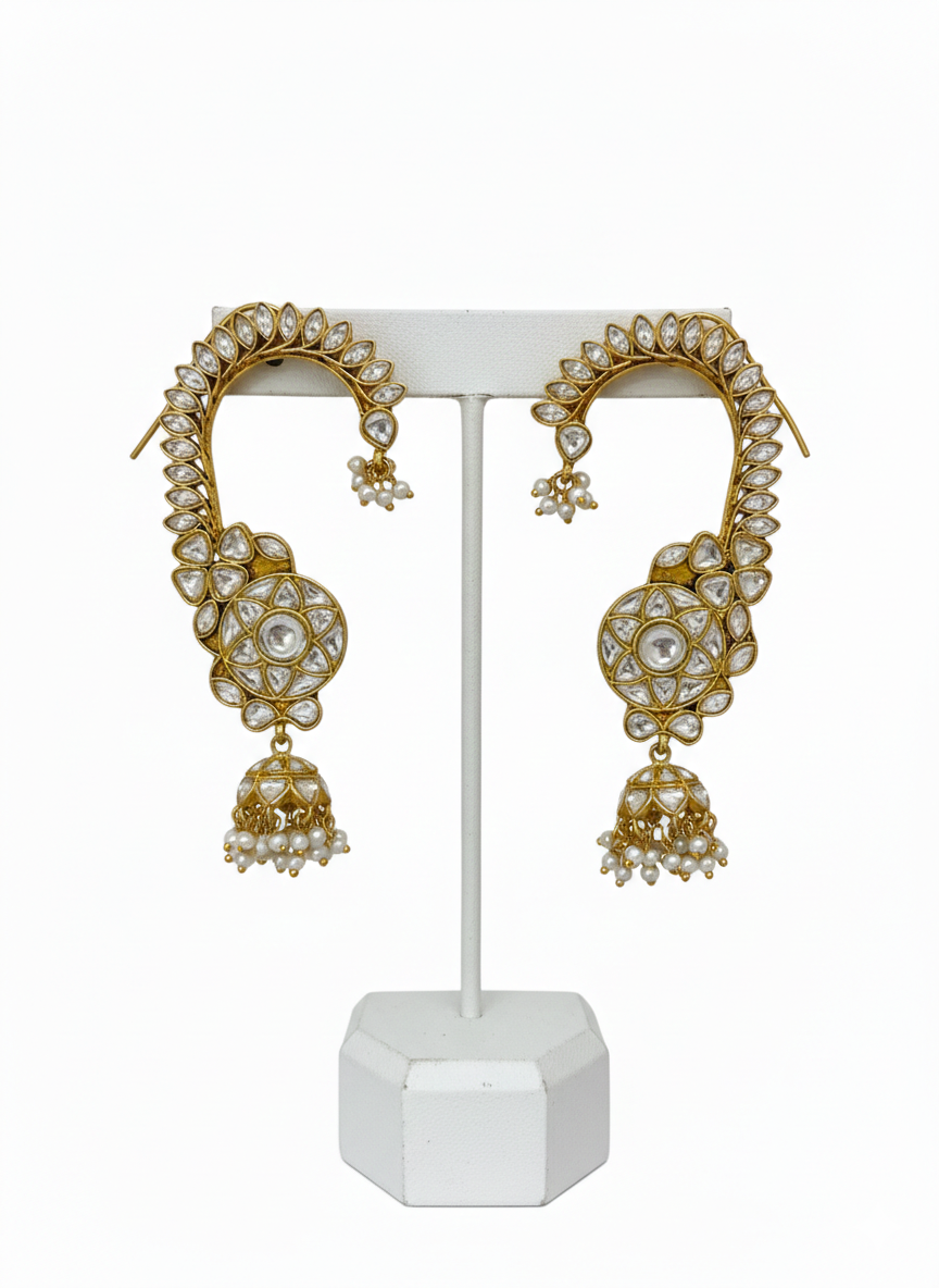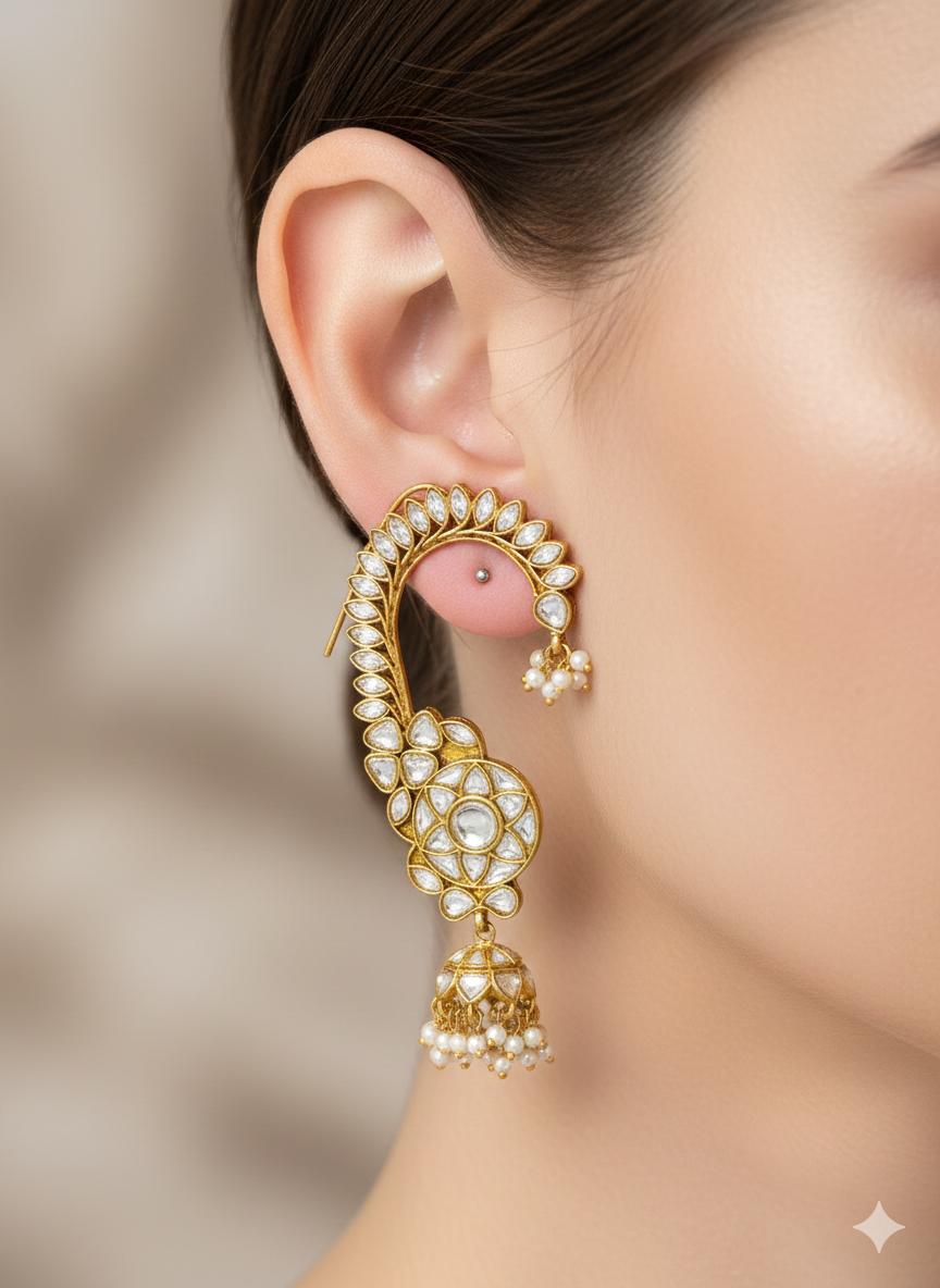 Heritage Gold-Plated Kundan Ear Cuffs with Jhumka Drops