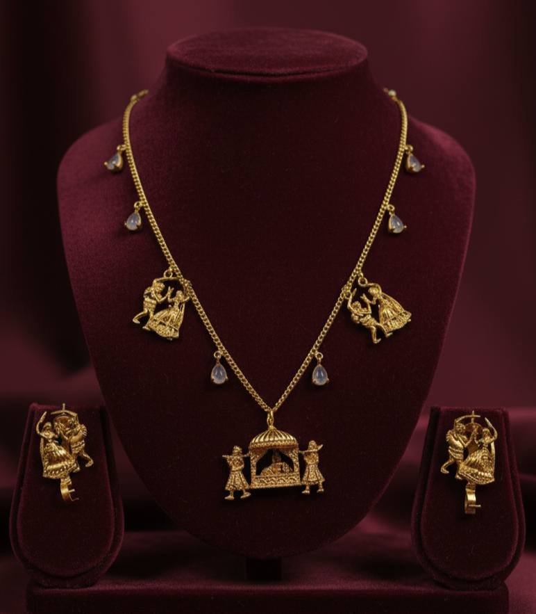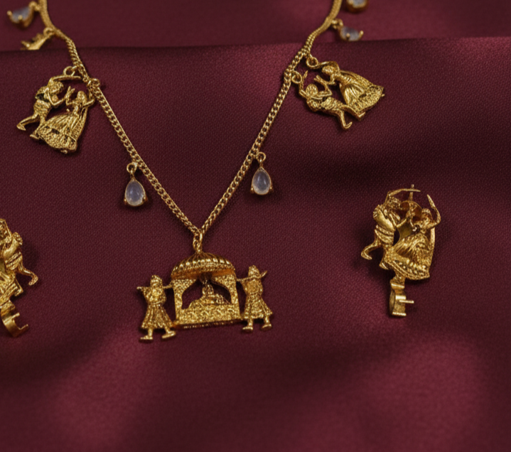 The Craftsmanship: Finished with high-purity gold plating and traditional stone-setting techniques, the set is secured by an adjustable silk dori (cord) for a custom fit.