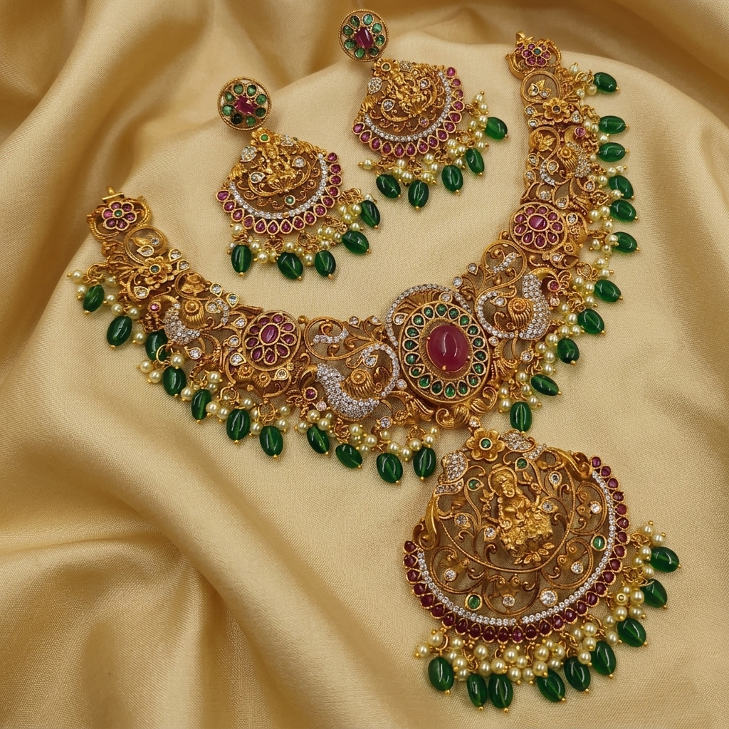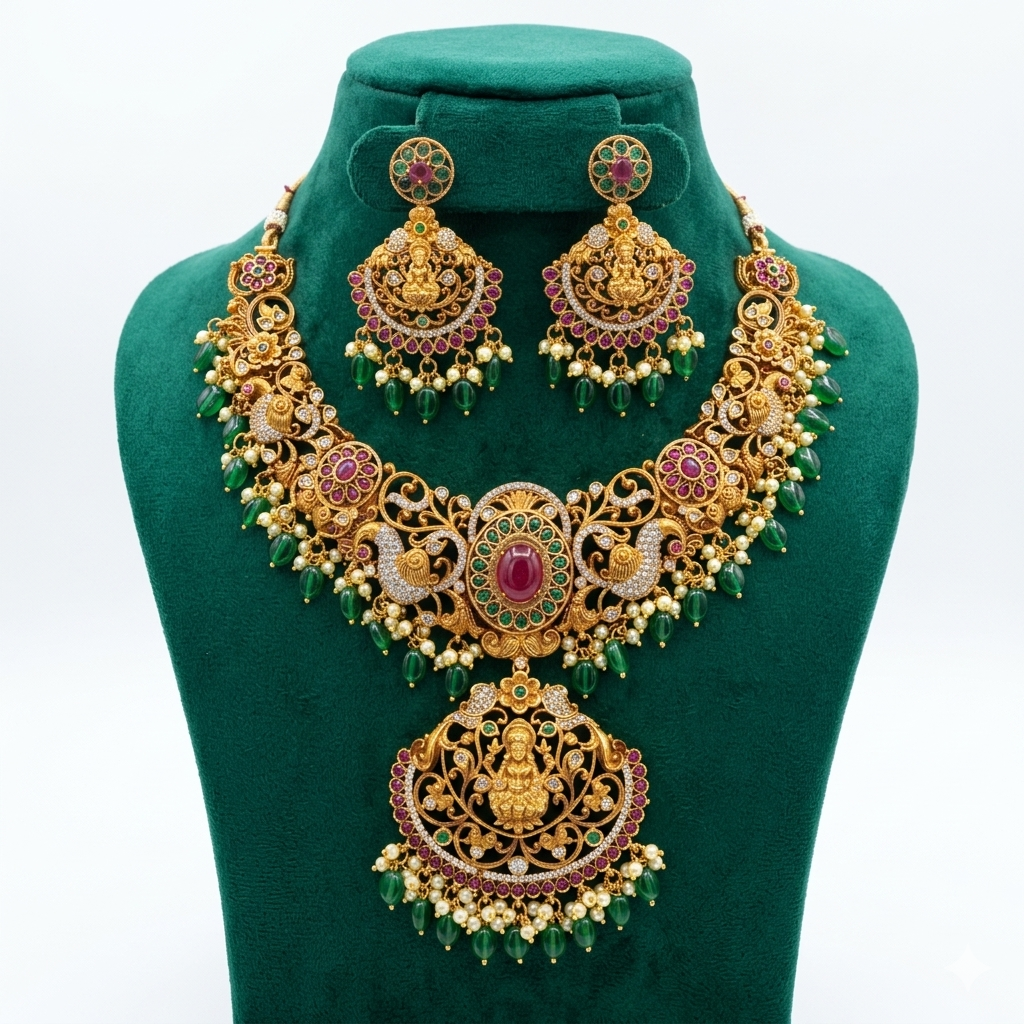 Imperial Guttapusalu Emerald & Pearl Bridal Set
