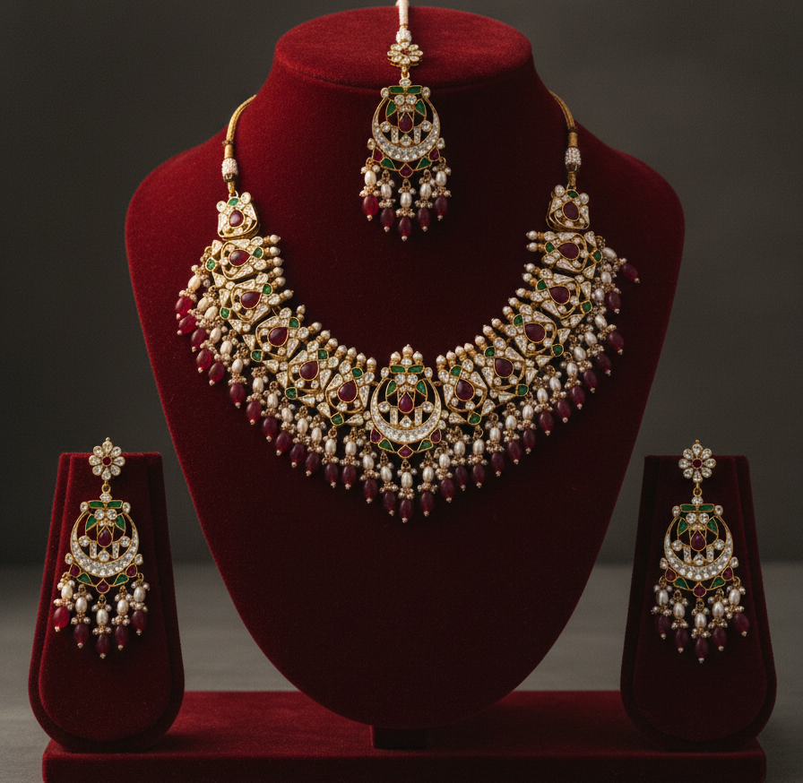 Capture the essence of heritage with this opulent jewelry ensemble, designed for high-glamour bridal or festive occasions: