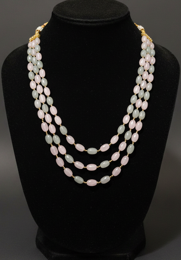• Design: Traditional multi-strand mala with handcrafted stone-inlaid medallions.