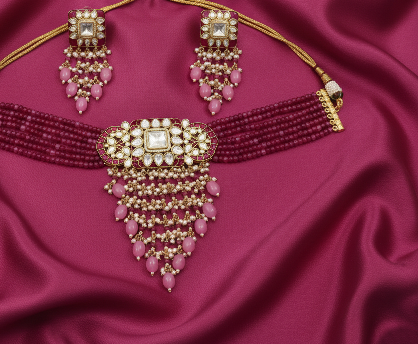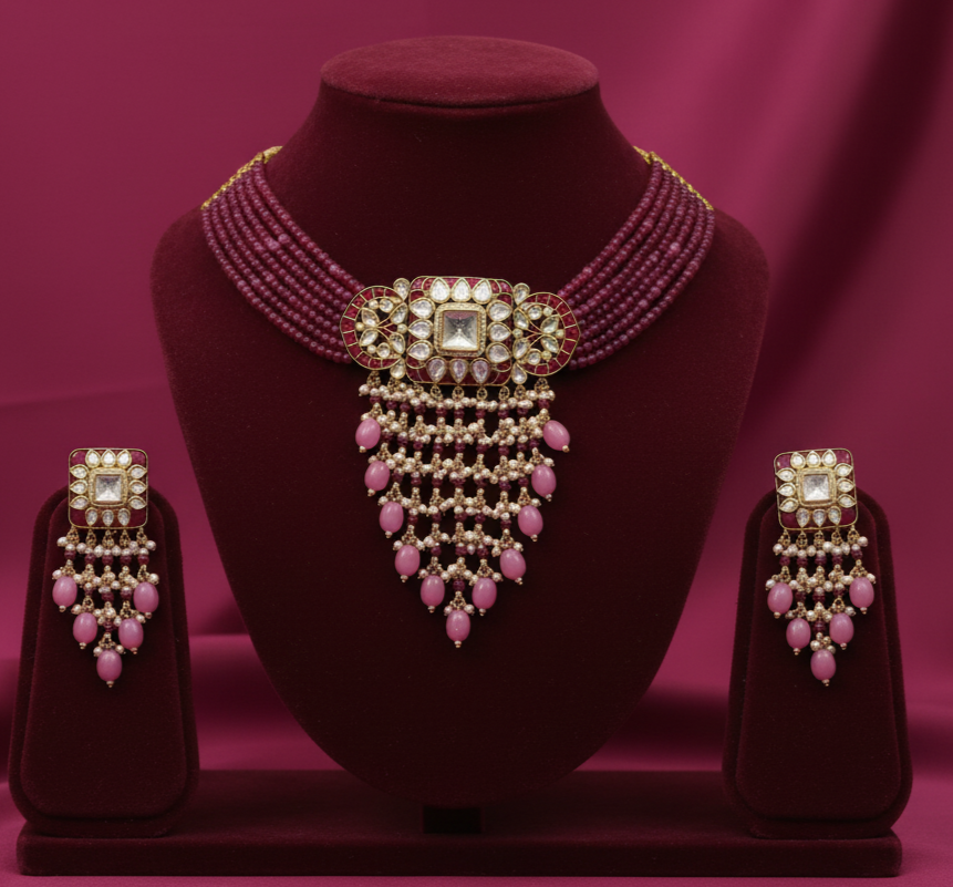 Be the first to review “Lavender Haze Kundan Choker with Emerald Green & Pearl Cascades”