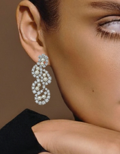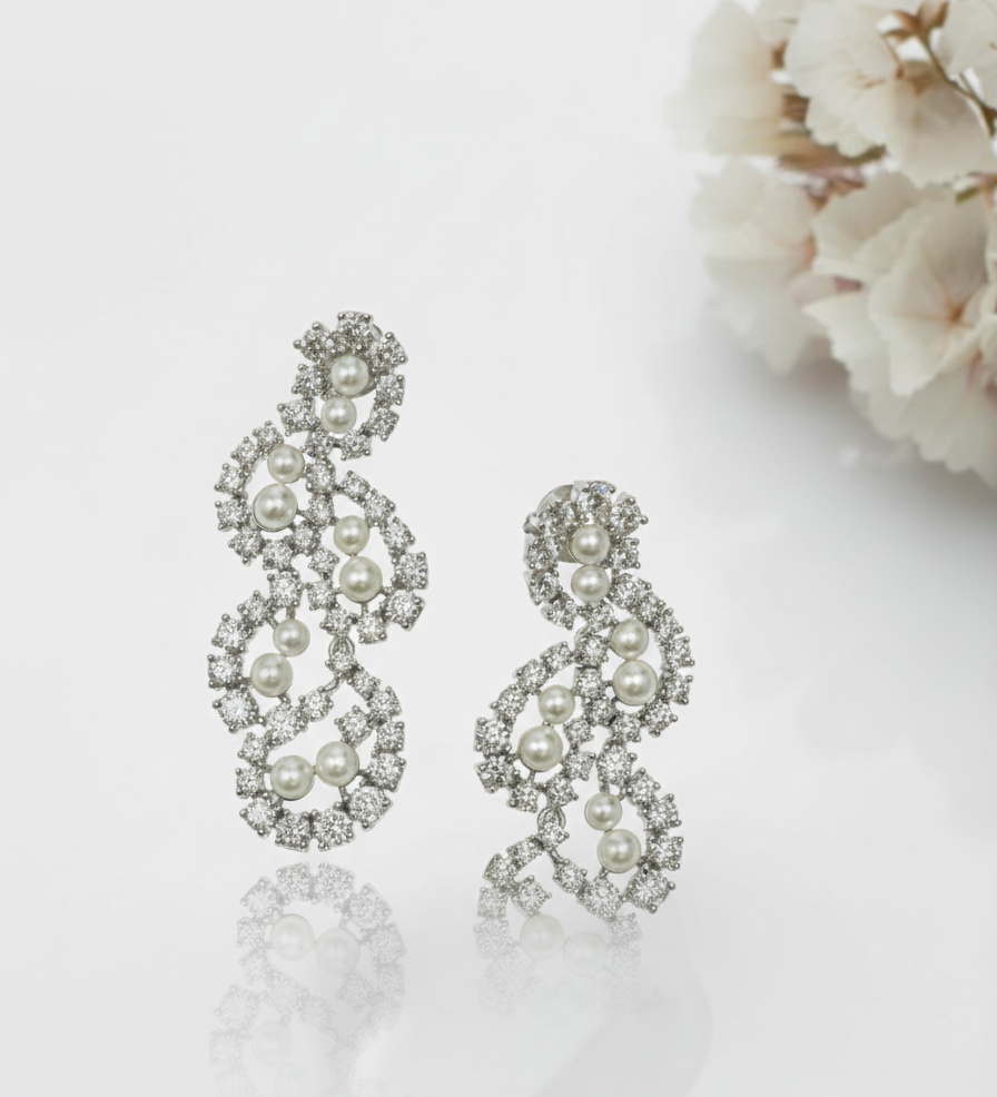Step into a world of timeless luxury with a design that mimics the effortless beauty of nature. These tiered “swirl” earrings combine the classic luster of pearls with the high-octane sparkle of modern diamond-setting, creating a stunning visual flow.