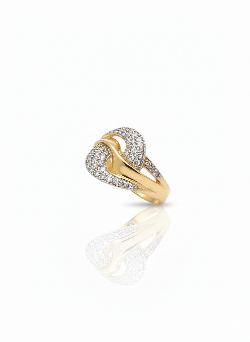 Luxurious 18K Yellow Gold Plated Intertwined Wave Ring with Micro-Pave Zirconia