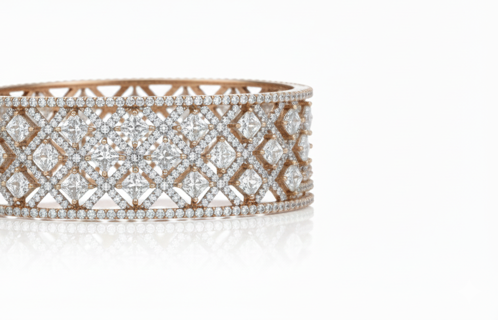 Experience the pinnacle of fine jewelry craftsmanship with this Rose Gold Diamond Lattice Cuff. Combining structural geometric precision with unparalleled brilliance, this bracelet is designed to be the centerpiece of any high-fashion ensemble.