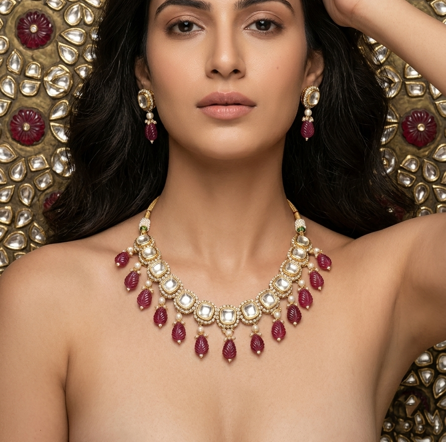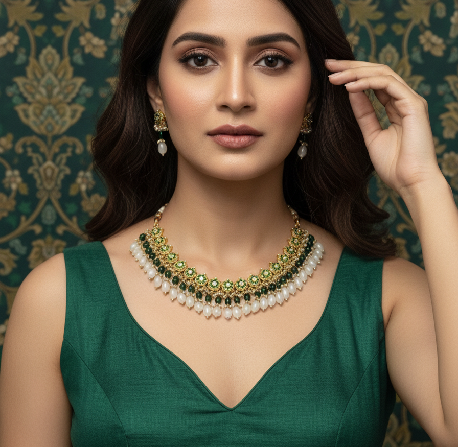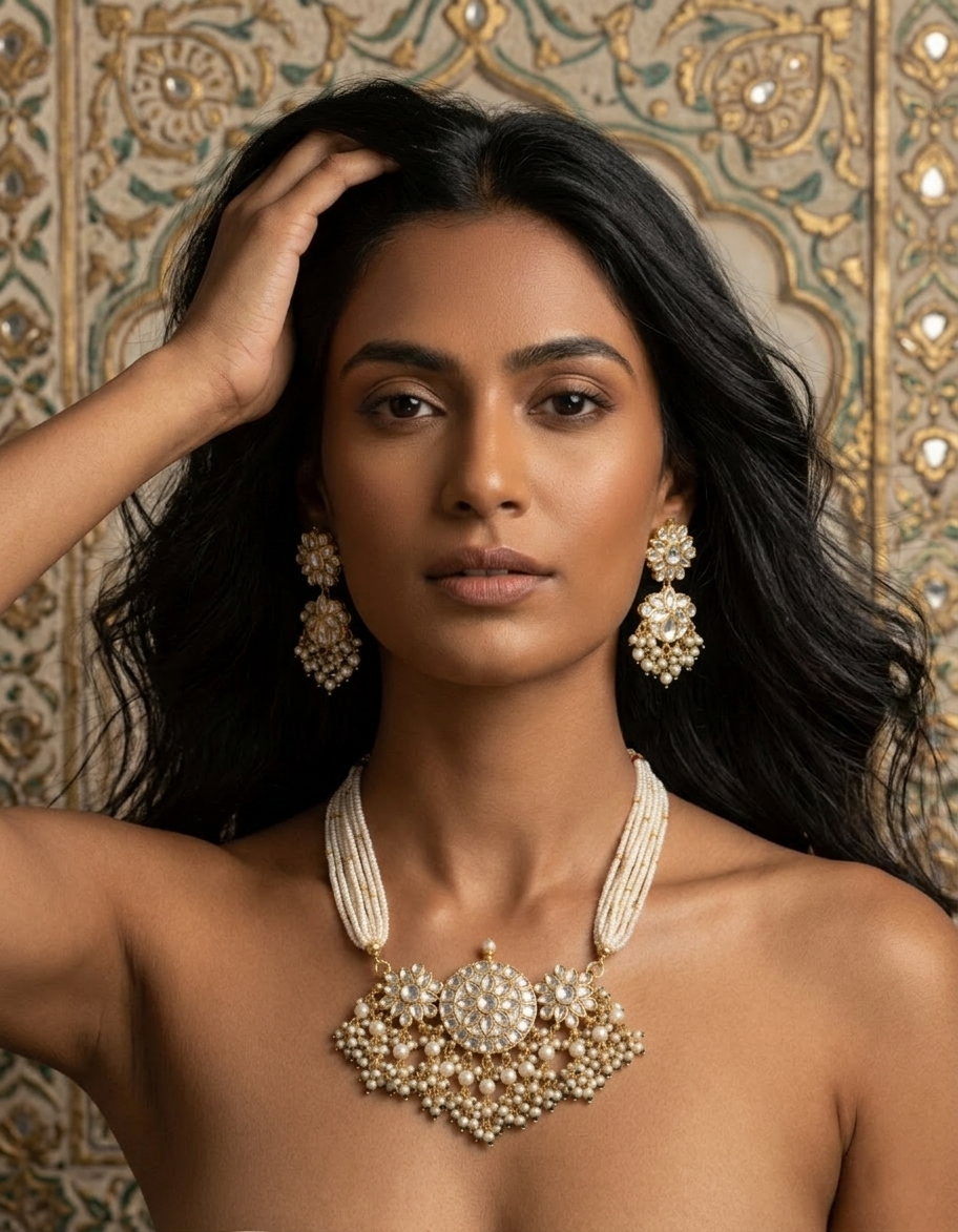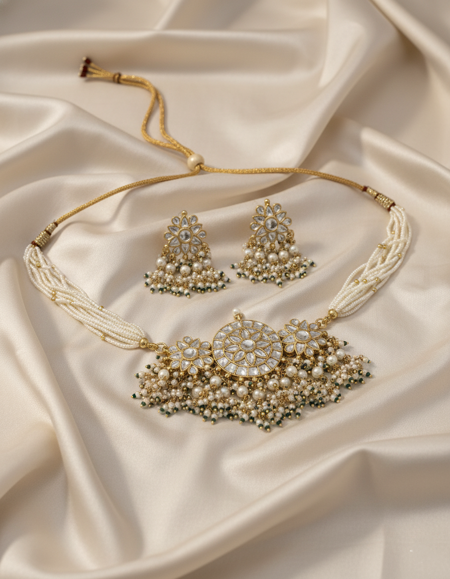 • The Craftsmanship: Every stone is precision-set to mimic the glow of uncut diamonds. The set is finished with an adjustable back to ensure a tailored fit for various necklines.