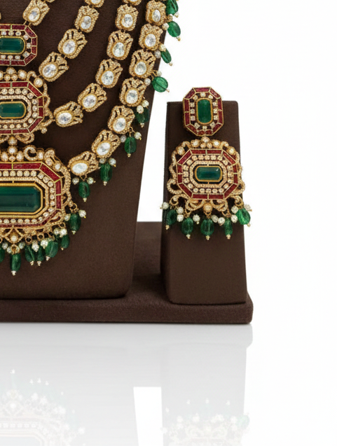 Majestic Emerald & Polki Multi-Layered Haar Set