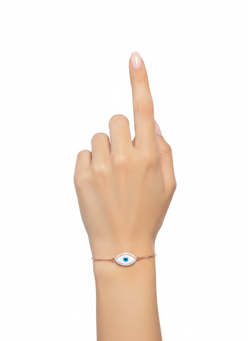 Marquise Pavé Evil Eye Rose Gold Bolo Bracelet