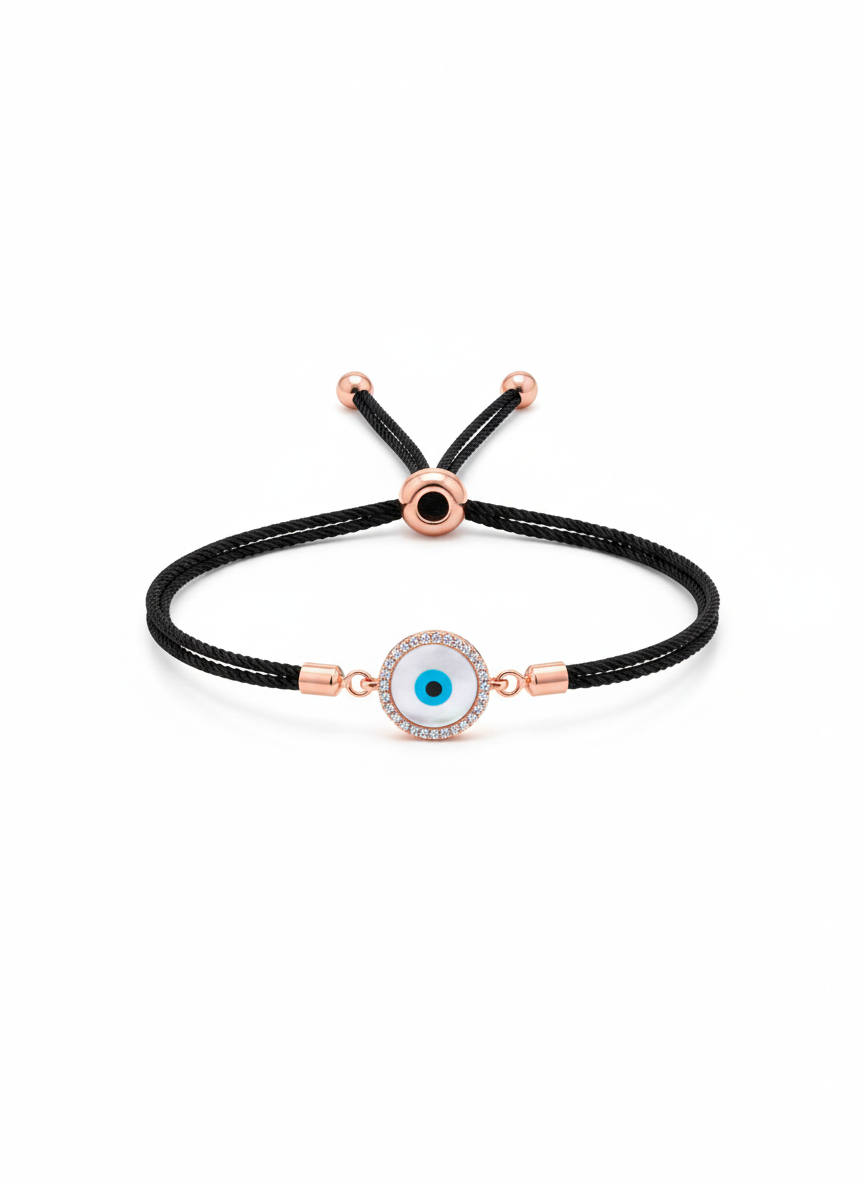 Marquise Tri-Color Pavé Evil Eye Rose Gold Bead Bracelet