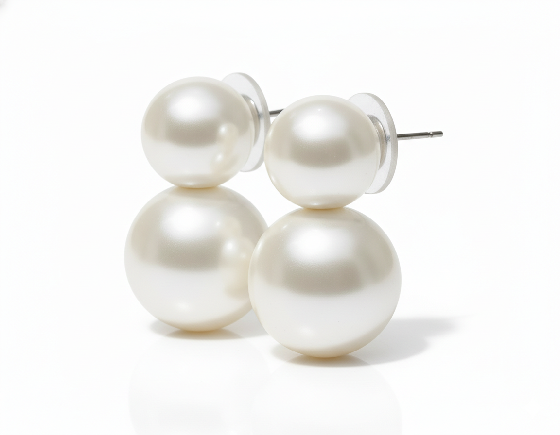 • Sculptural Silhouette: Each earring features a smaller pearl perfectly balanced atop a larger, oversized pearl. This tiered vertical design creates an elongated effect that flatters the jawline.