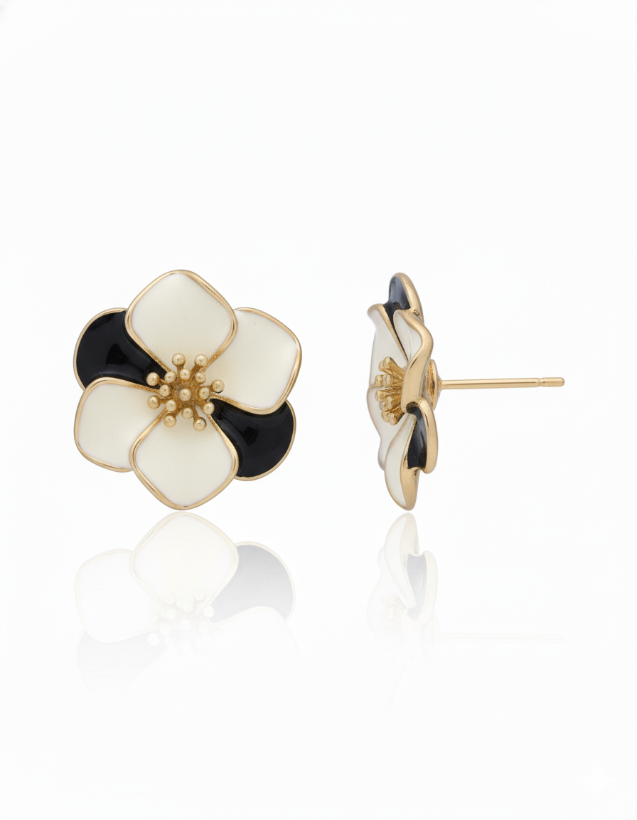 Make a sophisticated impression with these Black & Ivory Floral Enamel Studs. Designed for the modern woman who appreciates high-contrast luxury, these earrings combine artisanal enamel techniques with brilliant gemstone detailing.