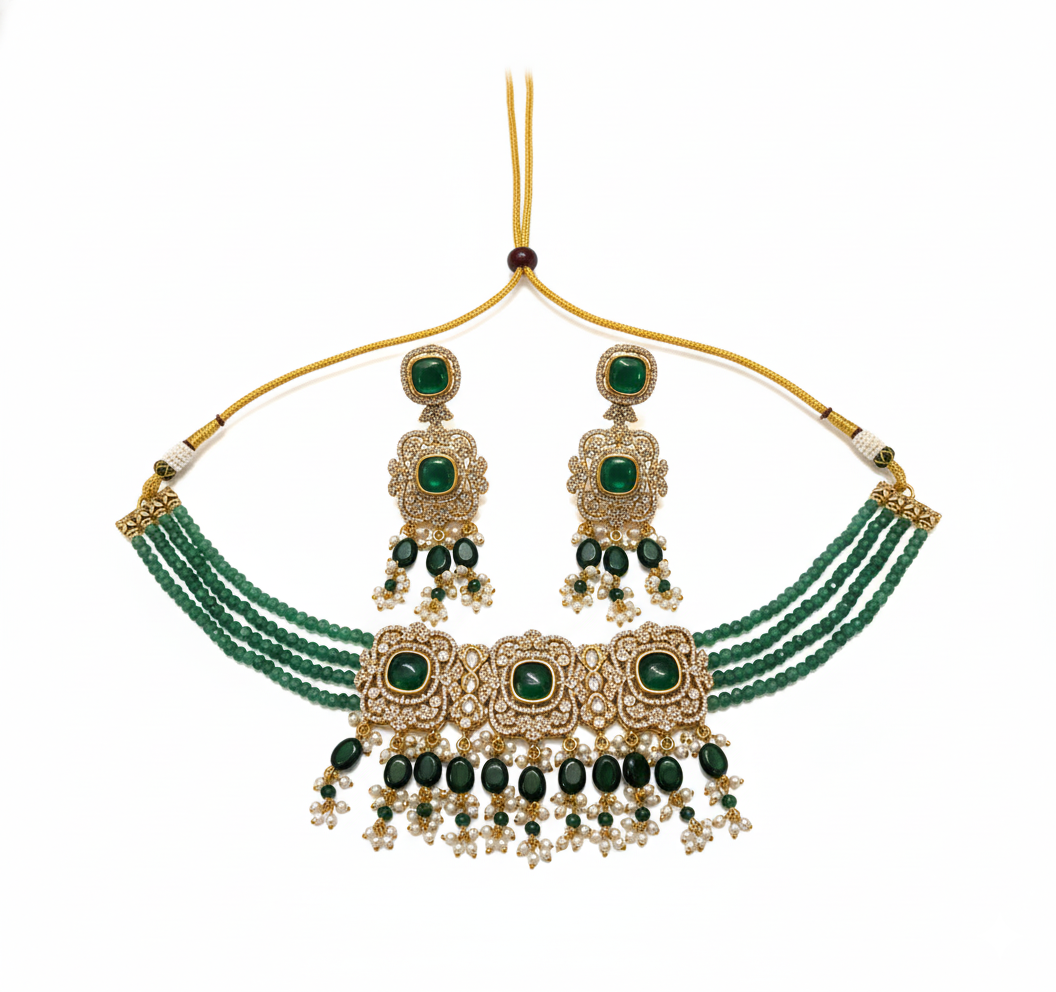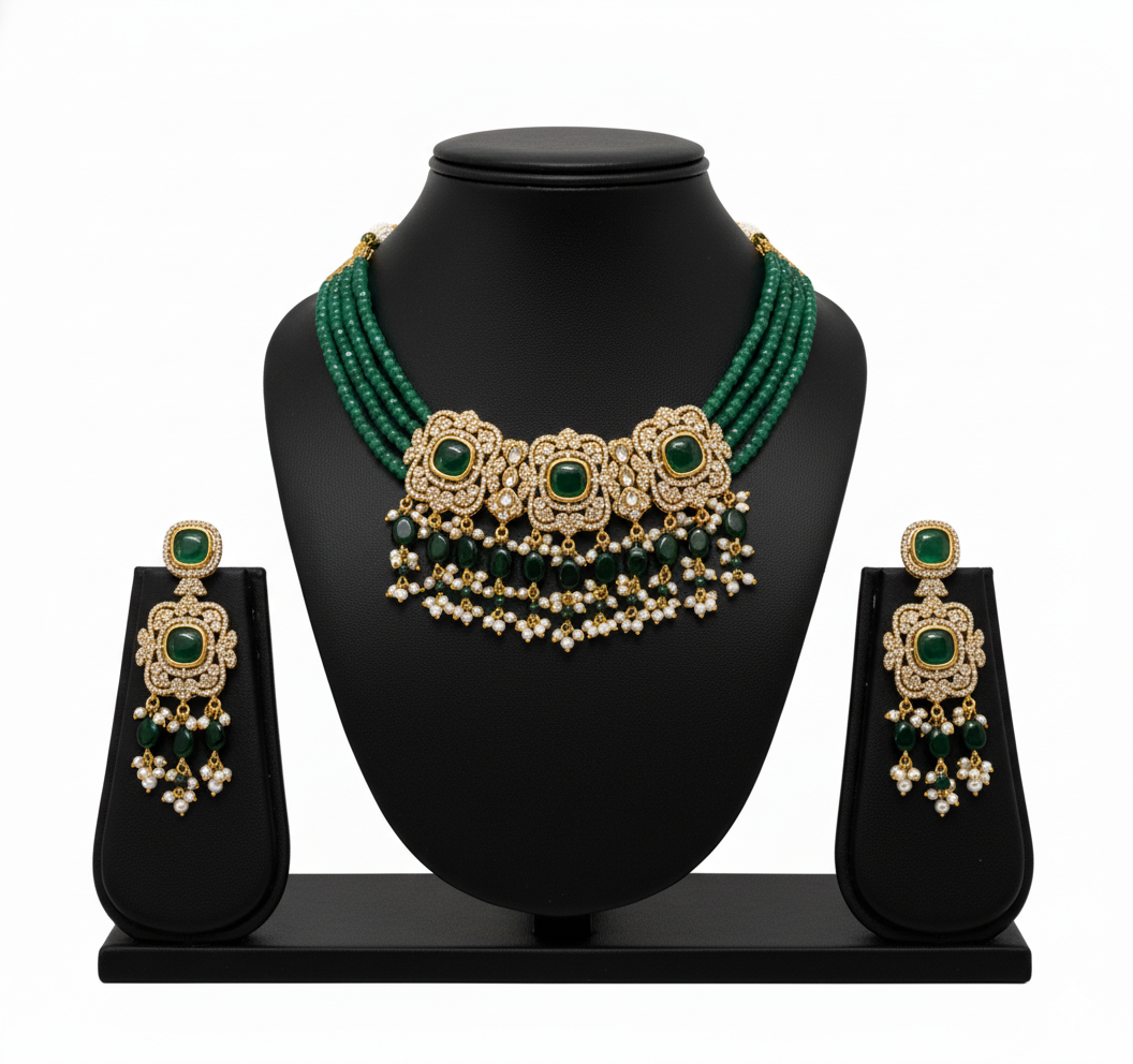 • Style Tip: This set is a stunning centerpiece for a deep velvet gown or a classic silk saree in midnight blue, silver, or crimson.