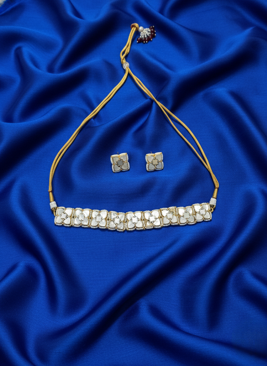 • The Finishing Touches: Supported by a traditional gold-threaded adjustable Dori, this choker can be worn snug against the neck or slightly lower as a short necklace.