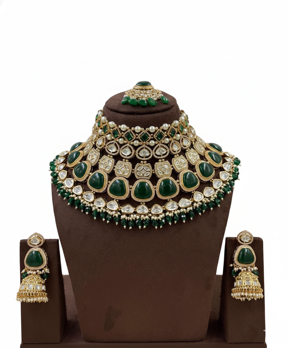 Noor-e-Sultan Emerald Polki Bridal Set
