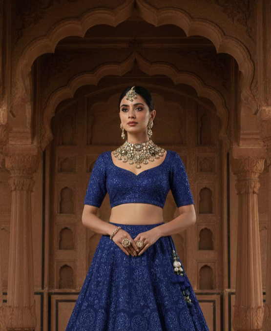 The Noor-e-Zameen Regal Set is a striking tribute to classic Indian royalty and timeless elegance. Crafted in a rich polki-inspired design, this necklace features luminous uncut-style stones framed with deep green and subtle ruby accents that add depth and grandeur. The layered drop motifs create graceful movement, while the bold central medallion enhances its regal appeal. Paired with perfectly coordinated statement earrings, this set is ideal for brides, festive celebrations, and heirloom-inspired looks. Opulent yet balanced, Noor-e-Zameen captures the essence of tradition with refined craftsmanship, making it a standout piece for those who cherish royal sophistication.