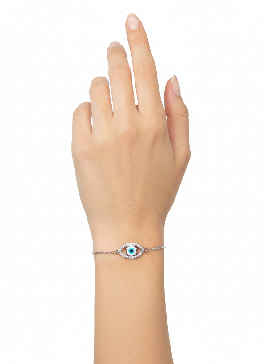 This refined accessory offers a multi-dimensional play of light through its high-jewelry inspired silhouette. The focal point is a horizontally oriented marquise station, meticulously set with dense rows of light-catching stones. Moving along the high-polish bead (ball) chain, a series of three pear-shaped charms creates a graceful, rhythmic movement on the wrist.
