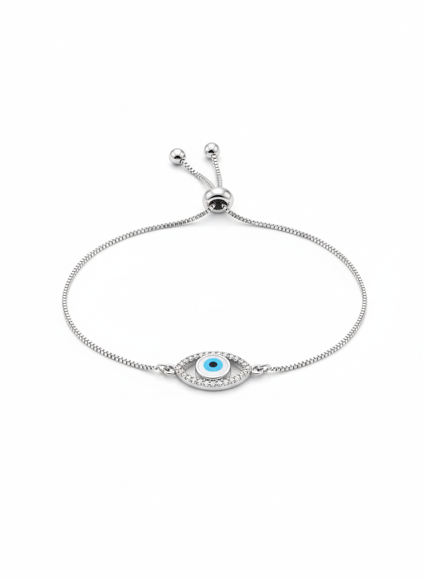 A delicate expression of modern sparkle, this silver-tone bracelet features a central marquise-shaped station and three graduating teardrop charms. Entirely encrusted with shimmering brilliant-cut pavé accents, the piece is integrated into a contemporary bead chain with an adjustable lobster clasp for a secure, elegant fit