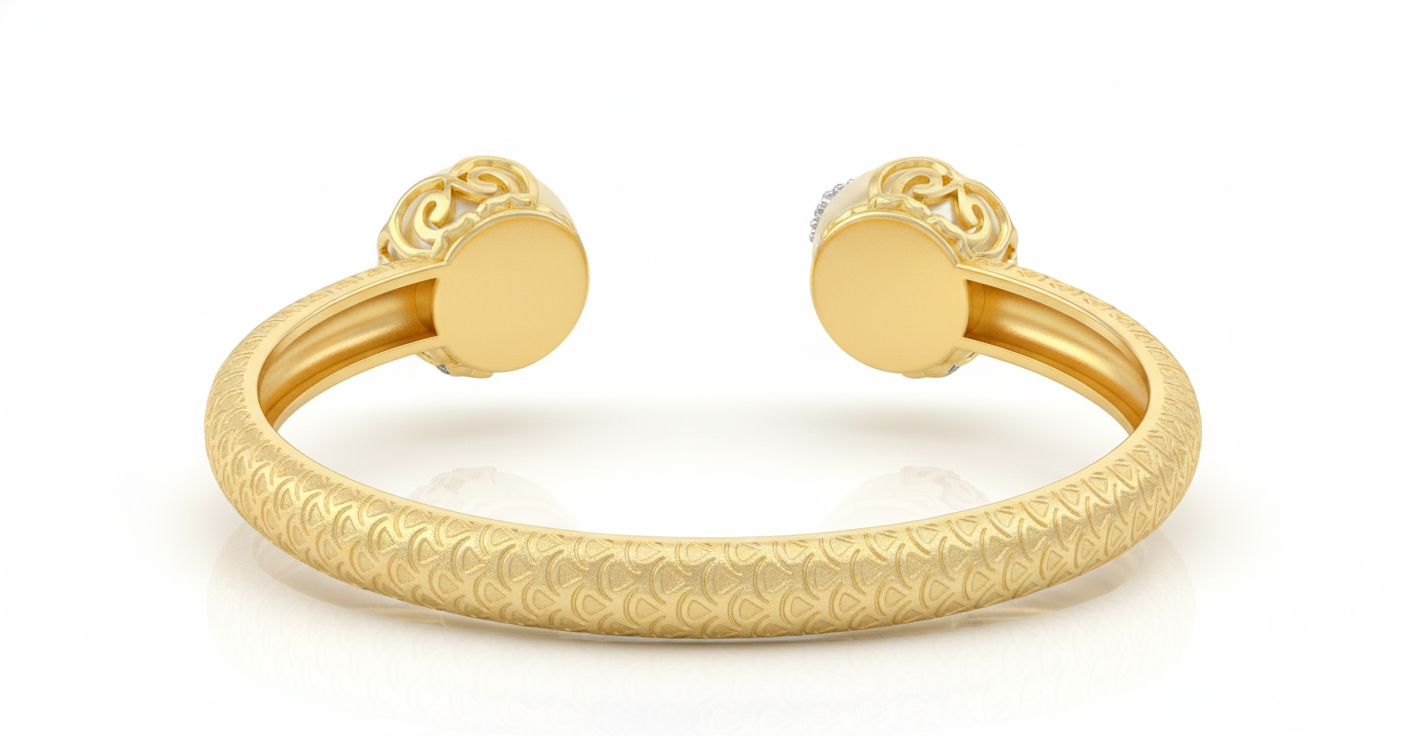 Add timeless elegance to your jewelry collection with this beautifully crafted Pearl Open Cuff Bangle. Designed with a sleek gold-tone finish, this open bangle features two smooth, round pearls at each end, accented with subtle sparkling stones for a refined touch of glamour. The textured metal band enhances its premium look while ensuring durability and comfort. Its open cuff design allows easy wear and a flexible fit, making it suitable for all wrist sizes. Perfect for casual outings, office wear, festive occasions, or gifting, this bangle effortlessly blends classic charm with modern style.