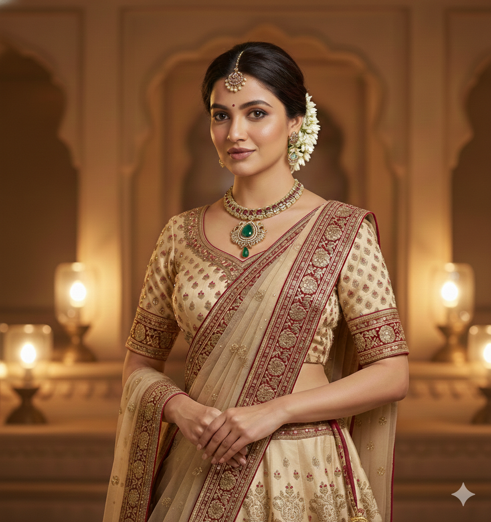 The intricately carved pendant showcases traditional peacock-inspired detailing, symbolizing grace and prosperity, while the matching earrings echo the same regal artistry. Perfect for weddings, festive celebrations, and cultural occasions, this set brings classic opulence to any ensemble.