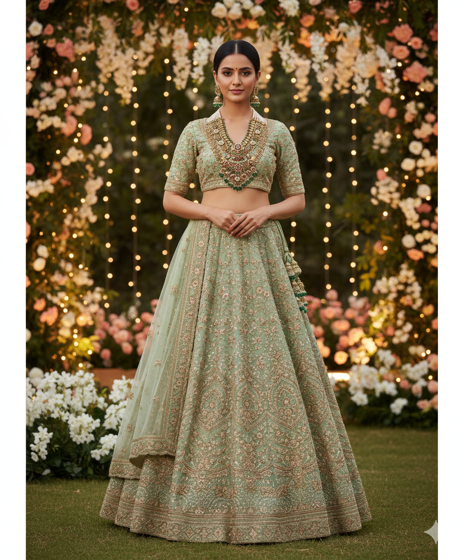 The Rajwada Pushpika Grand Set is a magnificent expression of royal Indian craftsmanship. Designed in a lavish temple-inspired style, this layered necklace features intricate floral motifs highlighted with rich ruby and emerald accents, set in antique gold tones. Delicate pearl and green bead drops add graceful movement and depth, enhancing its majestic presence. The elaborate central pendant forms a striking focal point, perfectly balanced by matching jhumka-style earrings. Ideal for brides and grand ceremonial occasions, this statement set embodies heritage, devotion, and luxury, making it a timeless heirloom piece for those who seek traditional grandeur with exquisite artistry.