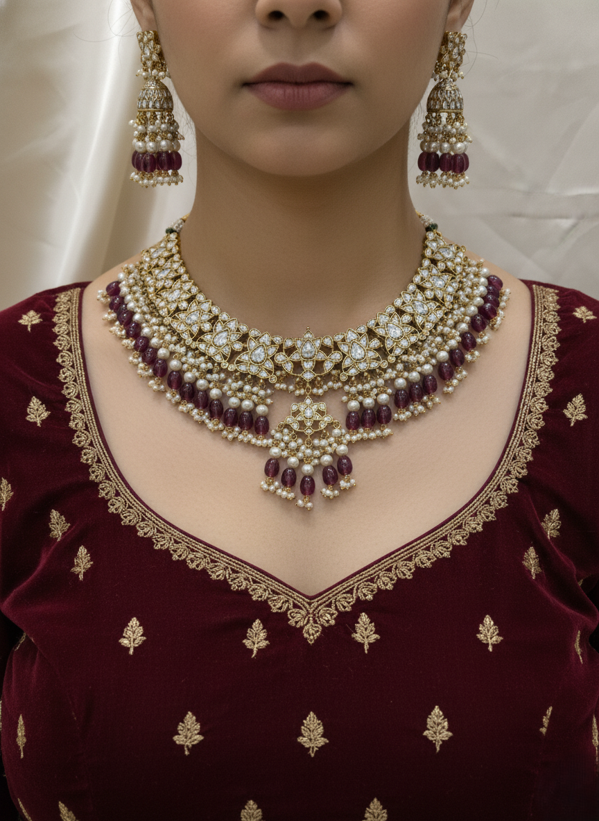 Kundan Brilliance: Each focal medallion is encrusted with high-quality Kundan stones, providing a timeless, royal sparkle.