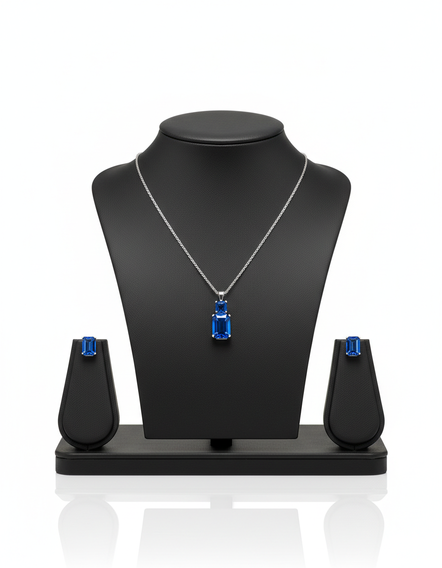 • Elegant Drop Earrings: The coordinating earrings feature a linear triple-stone drop, perfectly mirroring the necklace’s centerpiece to frame the face with light.
