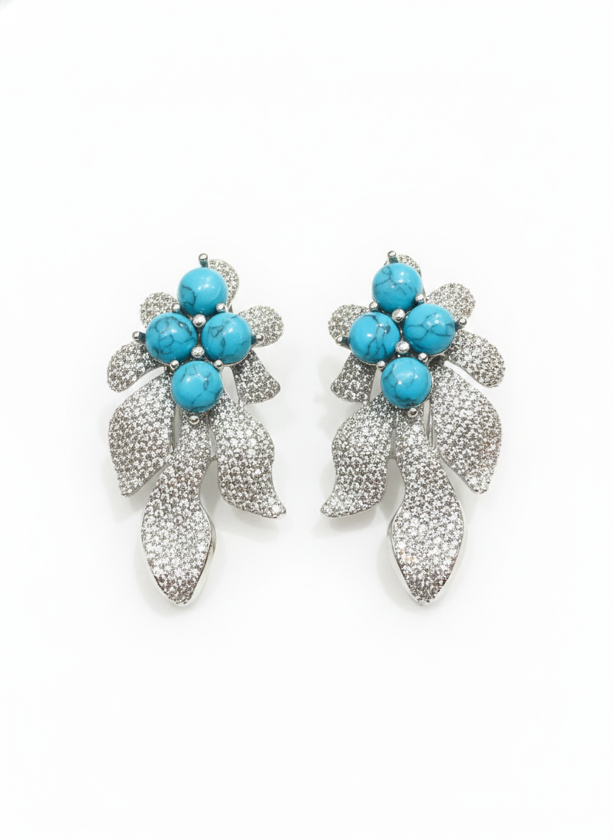These striking earrings feature a sculptural floral design brought to life through meticulously arranged deep purple, square-cut stones. Each earring forms a dimensional, layered bloom that radiates outward, creating a captivating geometric texture and rich color depth. At the heart of each piece sits a brilliant crystal cluster, forming a sparkling flower that contrasts beautifully with the vivid purple setting. The combination of precise structure, gemstone-like shine, and radiant centerpiece gives these earrings an elegant yet artistic appeal—perfect for elevating evening looks, statement outfits, or any occasion that calls for distinctive glamour.