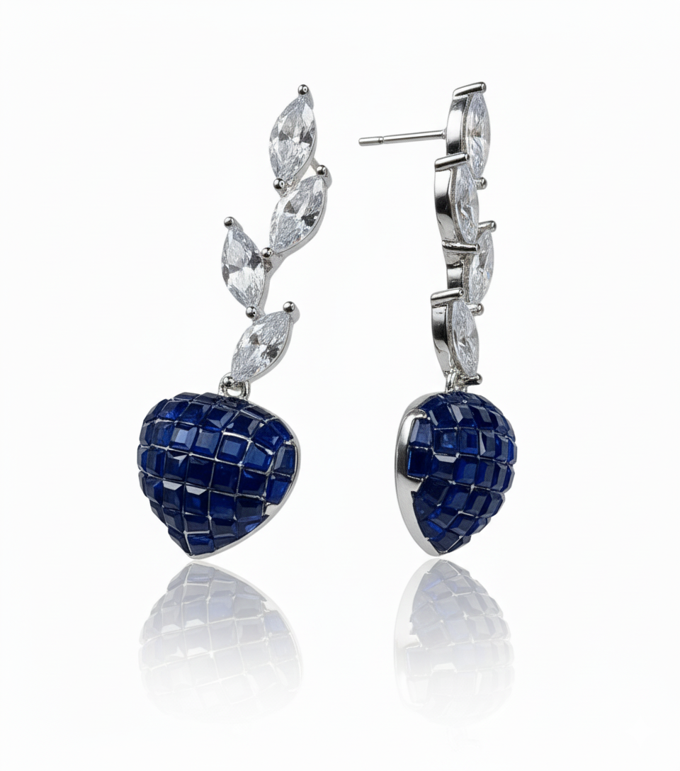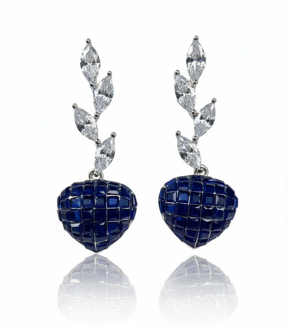 Ruby Heart Mosaic & Marquise Leaf Drop Earrings