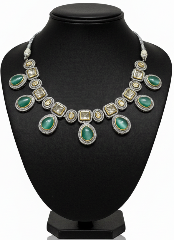 Design: Architectural gold-toned choker with a tiered multi-stone focal point.