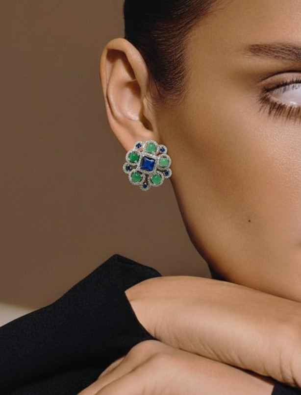 Elevate your everyday luxury with these masterfully crafted Solitaire Halo Studs. Each earring features a brilliant, round-cut center stone held in a traditional four-prong setting, designed to capture and reflect light from every angle. This focal point is encircled by a radiating halo of precision-cut tapered baguette stones, creating a sophisticated “sunburst” effect that adds architectural depth and modern flair. Set in a high-polish silver-finish mounting, these studs offer a seamless blend of classic elegance and contemporary geometric design. Whether worn as a bridal accessory or a signature piece for the office, these earrings provide a timeless shimmer that complements any attire.