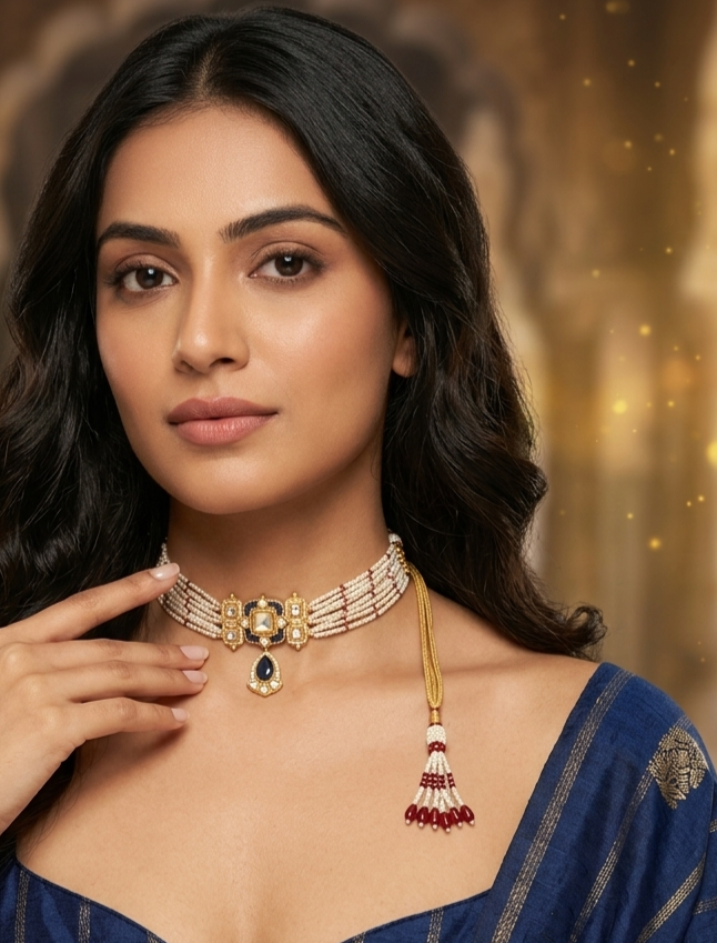 Aesthetics: The soft “dusty rose” or peach tones of the stones and beads make this an ideal choice for day weddings, bridal showers, or high-end ethnic fusion wear.