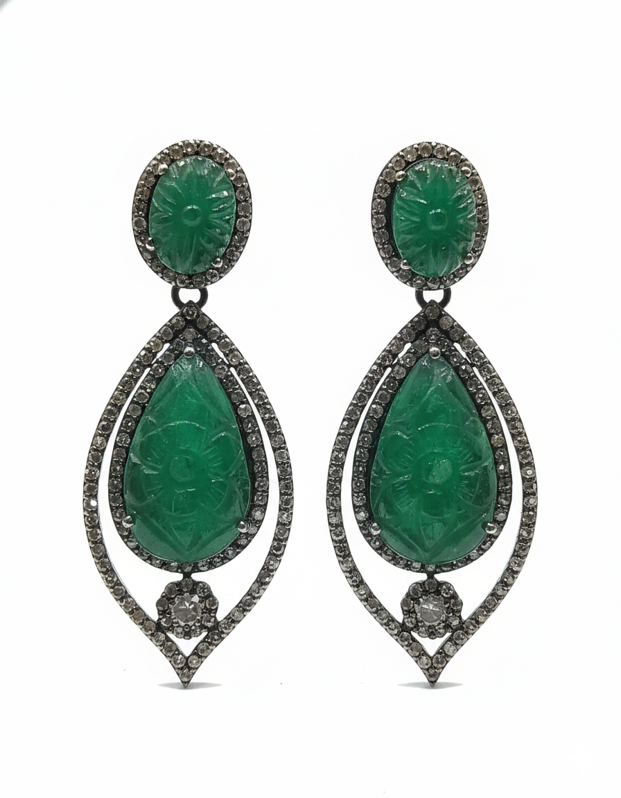 These exquisite floral stud earrings showcase timeless Indian craftsmanship with a contemporary finesse. Designed in a radiant gold-tone finish, the earrings feature intricate kundan-style ruby-colored stones arranged in a symmetrical floral pattern. A vibrant green center stone adds a striking contrast, while a delicate halo of lustrous pearls enhances the overall elegance. Perfect for festive occasions, weddings, and traditional celebrations, these studs bring regal charm and heritage beauty to any ensemble.