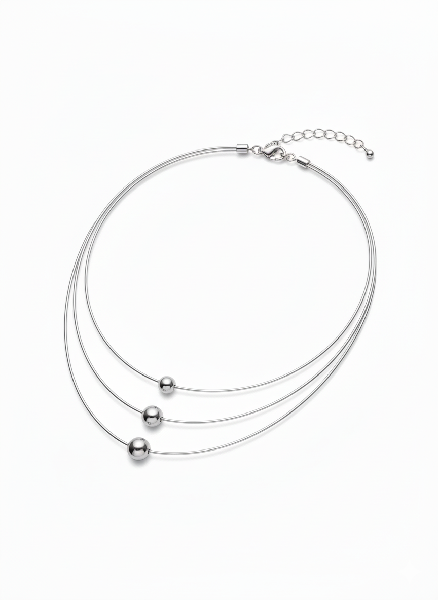 A stylish triple-layer stainless steel choker featuring sleek wires and three polished round beads. Lightweight, trendy, and perfect for daily wear, parties, and modern outfits. Designed for a clean, minimal, and fashionable look.