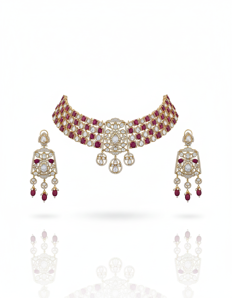 Triple-Row Ruby & Polki Choker Set