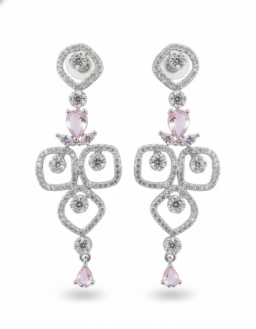 The tiered design creates a luxurious chandelier effect, while the polished silver-tone finish enhances the sparkle of every stone. Perfect for weddings, gala evenings, and statement styling, these earrings bring regal elegance to any look.